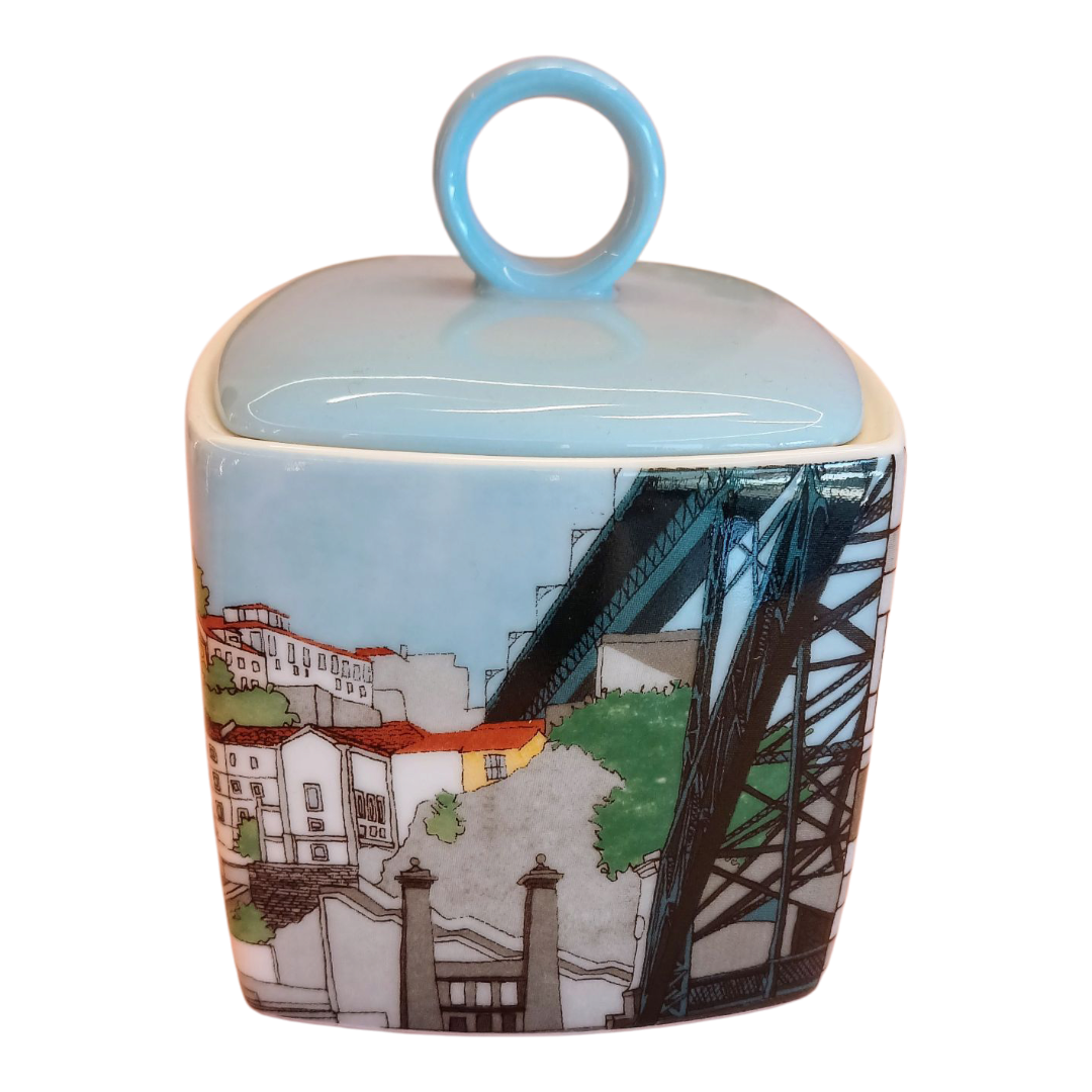 O Açucareiro da coleção Alma do Porto, da icónica marca portuguesa Vista Alegre, é uma peça em porcelana que homenageia a cidade do Porto com um design cheio de personalidade. Os seus detalhes gráficos evocam os traços característicos da paisagem urbana e cultural da Invicta.