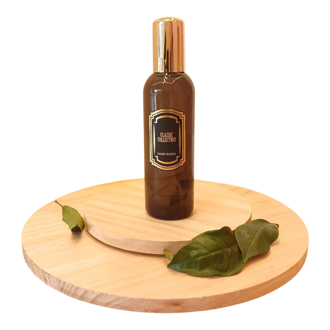 O Home Spray Orange Blossom da Vila Hermanos, com 100ml, oferece uma fragrância floral luminosa, fresca e elegante. Apresentado num frasco preto translúcido com tampa dourada, é um perfume sofisticado para os seus ambientes.
